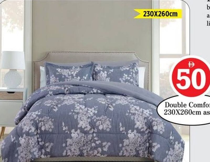 Double comforter with a delicate floral pattern, sized 230x260cm.