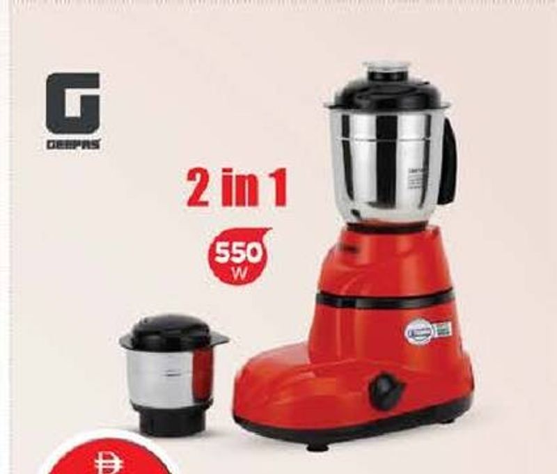 A 2-in-1 mixer grinder from Geepas with 550W power.