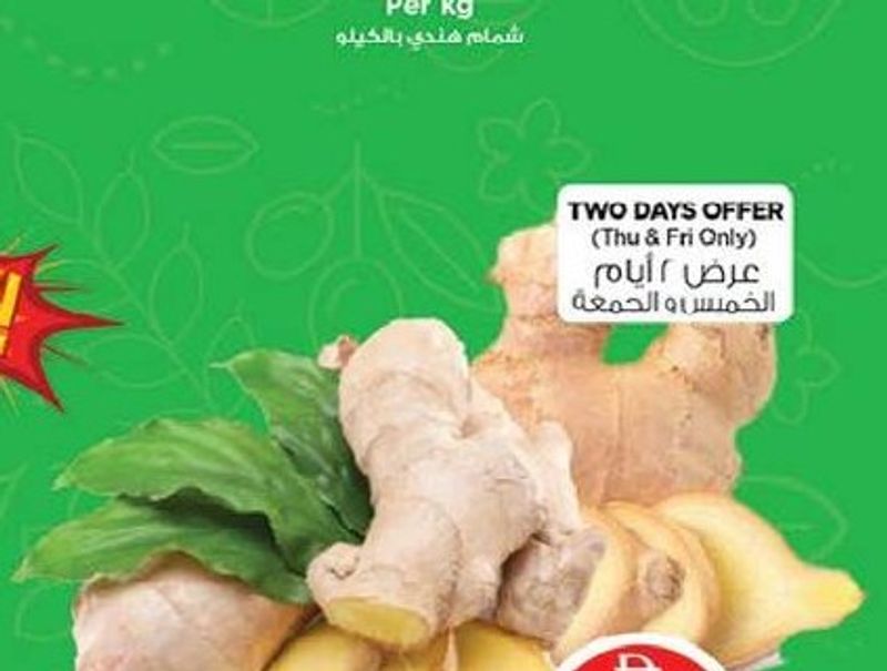 Fresh ginger from China available per kilogram, part of a two-day offer (Thursday & Friday only).