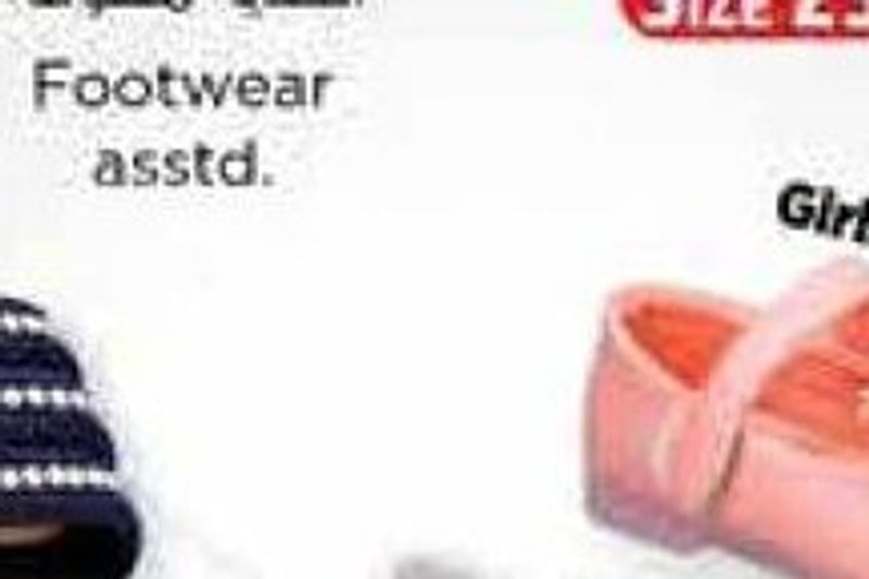 Assorted girls' shoes, available in sizes 25-35. Part of a 'Buy Any Pair' deal for AED 10.
