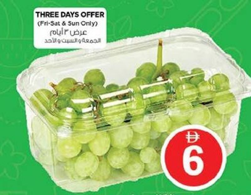 White grapes available per pack, part of a three-day offer (Friday, Saturday & Sunday only).