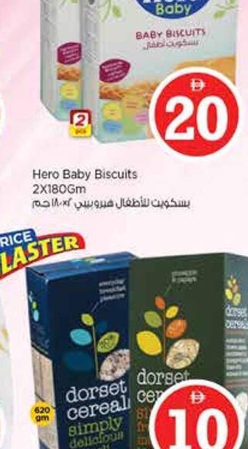 Hero Baby Biscuits, a pack of 2, each 180g.