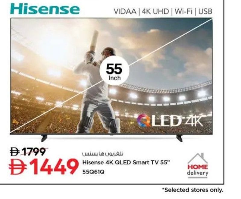 Hisense 4K QLED Smart TV 55" 55Q61Q with VIDAA, 4K UHD, Wi-Fi, and USB. Features LED 4K display and home delivery.