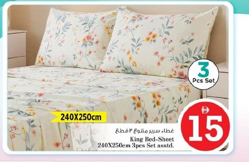 King Bed-Sheet 240x250cm 3pcs Set asstd.