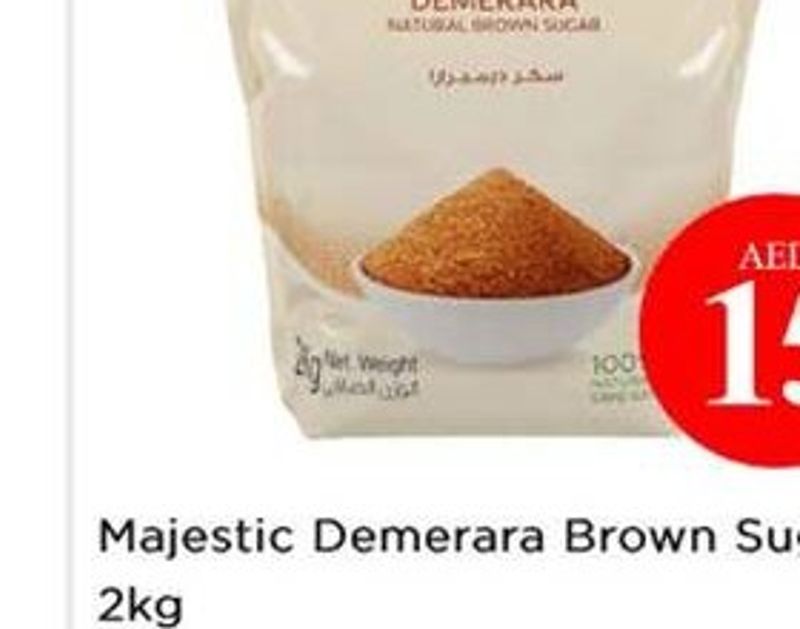 Majestic Demerara Brown Sugar in a 2kg pack.