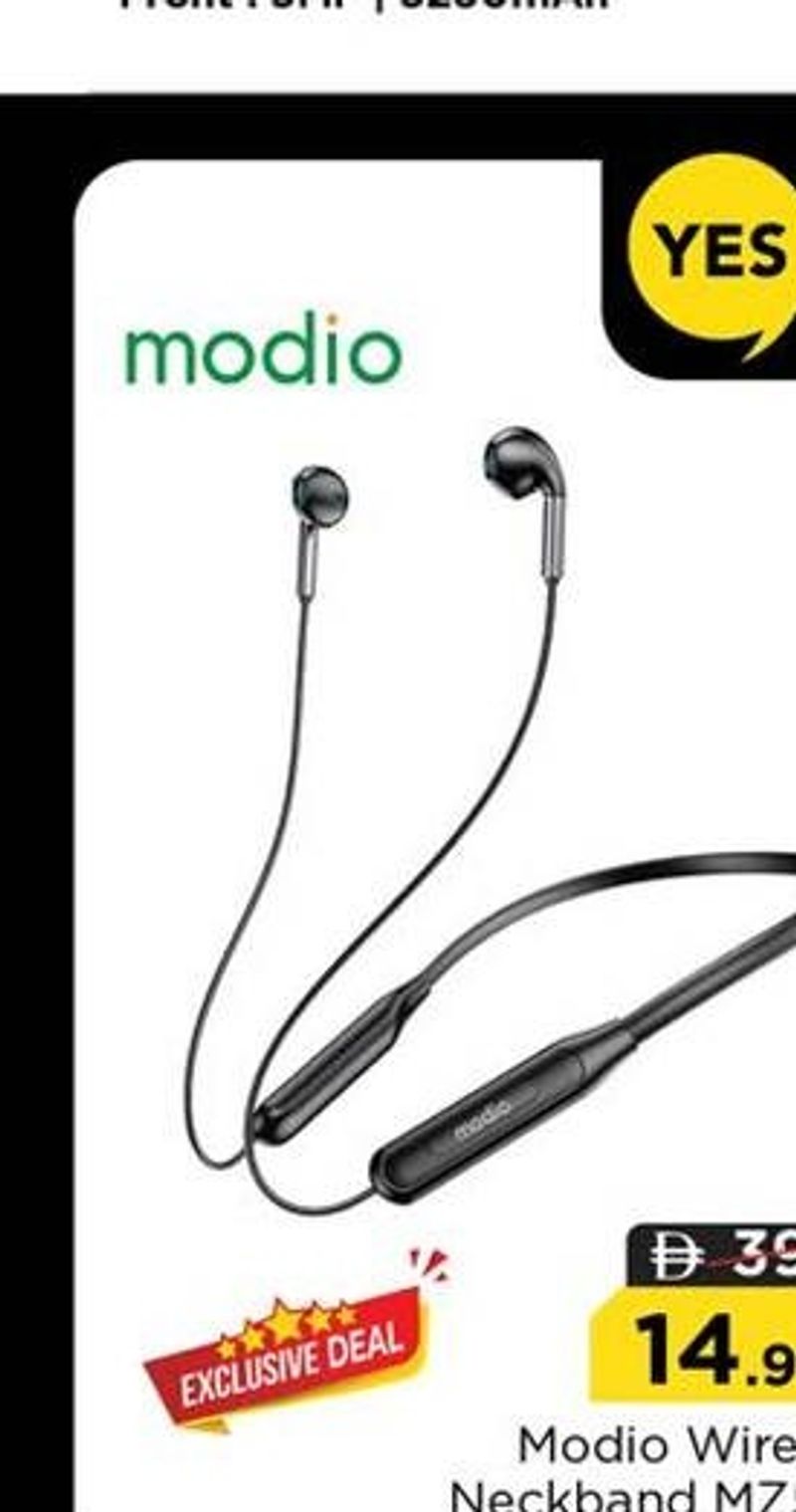 Modio Wireless Neckband MZ500, an exclusive deal available at selected outlets Yes Mobile Counter.
