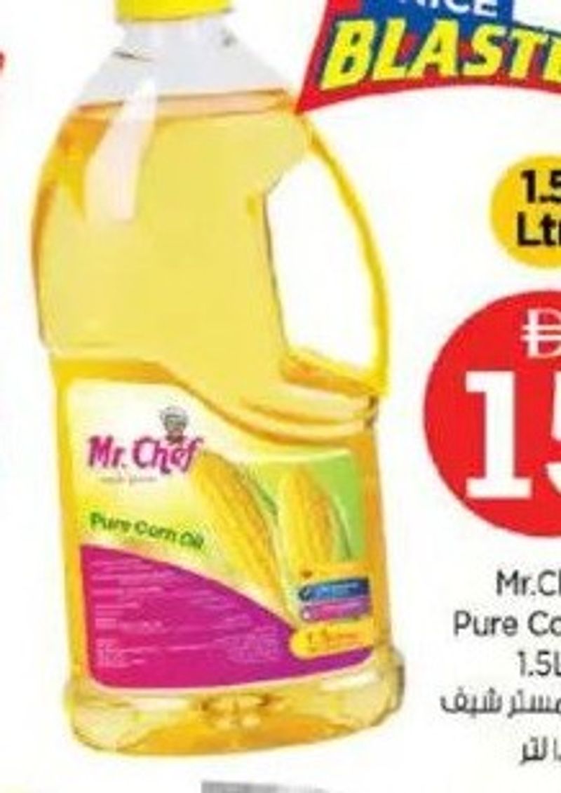 Pure corn oil from Mr. Chef, 1.5 liters.