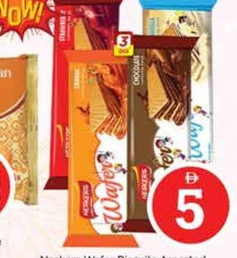Three assorted packs of Neskers wafer biscuits.