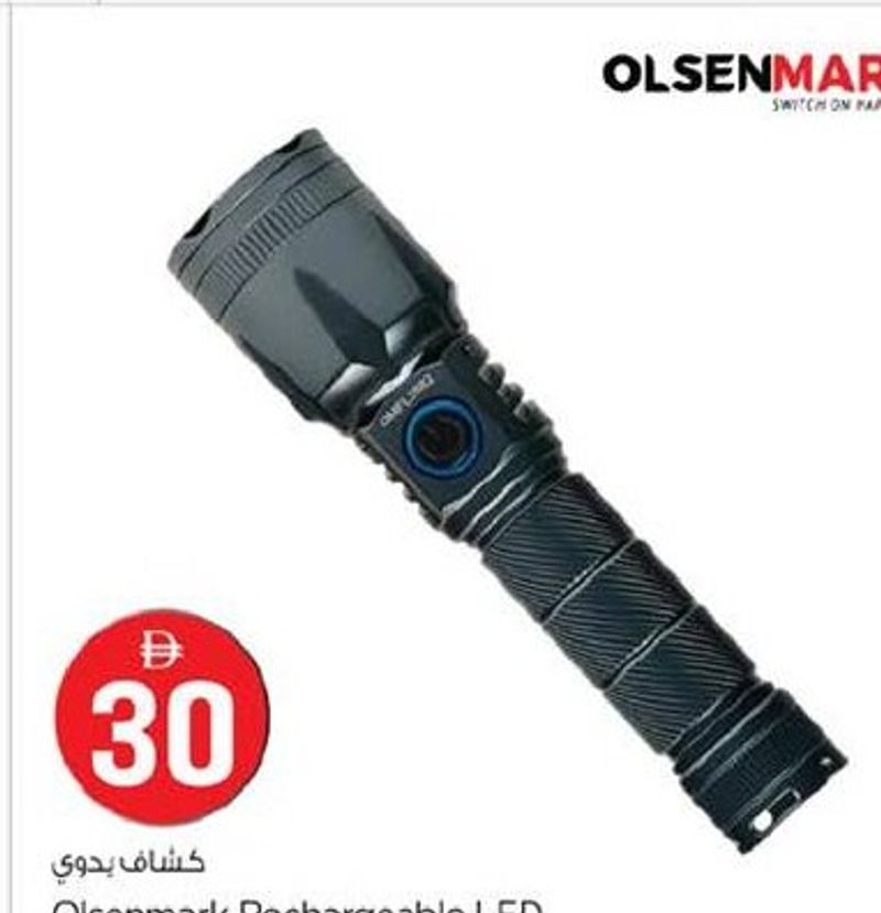 Rechargeable LED flashlight from Olsenmark for versatile use.