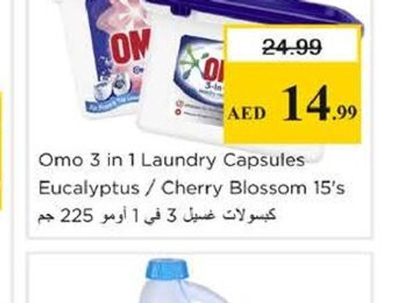Omo 3 in 1 Laundry Capsules, Eucalyptus / Cherry Blossom scent, 15 capsules.
