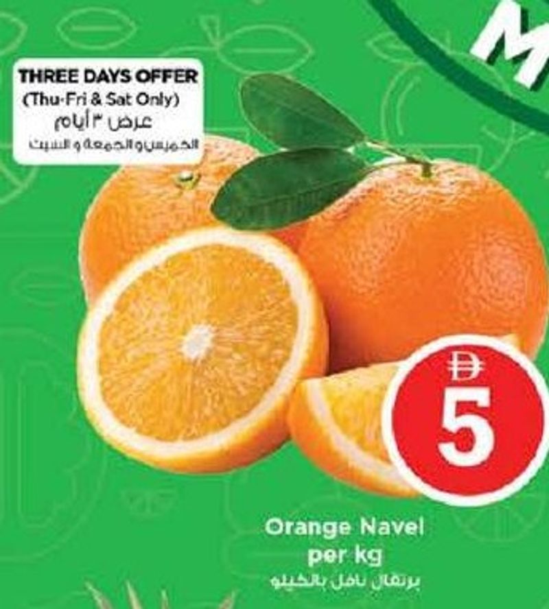 Three Days Offer (Thu-Fri & Sat Only) for fresh Navel oranges.