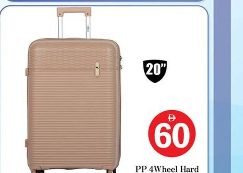 An assorted 20-inch PP hard trolley with 4 wheels, durable for all journeys.