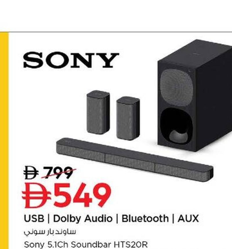 Sony 5.1 channel soundbar with USB, Dolby Audio, and Bluetooth connectivity.