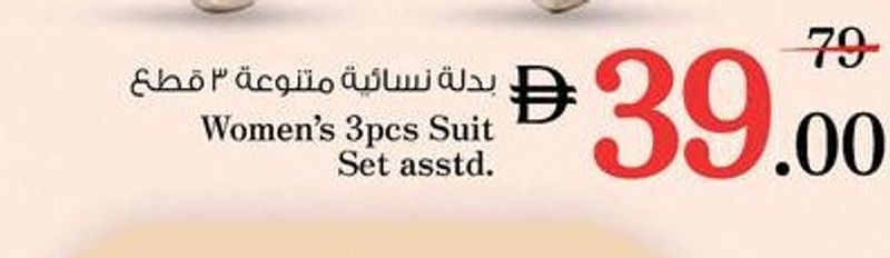An assorted women's three-piece suit set, offering a blend of traditional style and comfort at a discounted price.