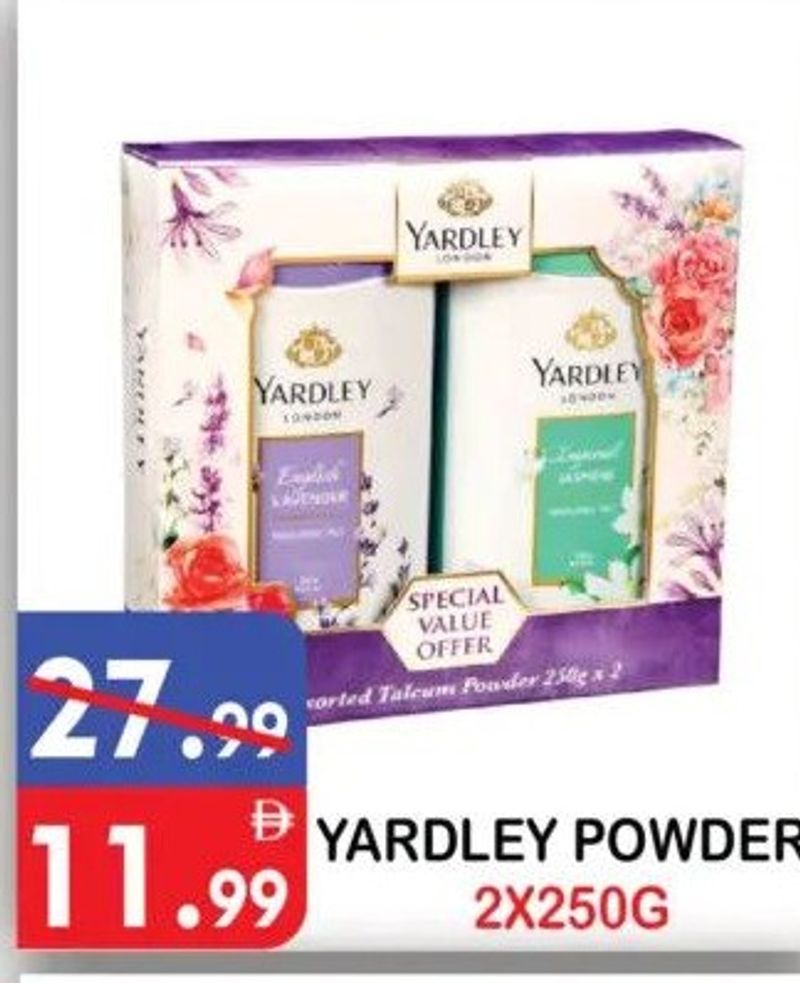 Special value offer for Yardley talcum powder, 2x250g.